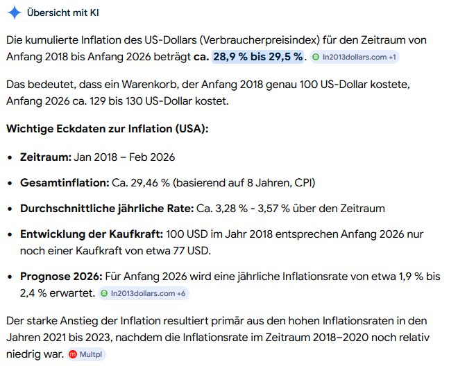 Inzwischen betrug die Inflation des Dollars in den letzten 8 Jahren mehr als 30%.