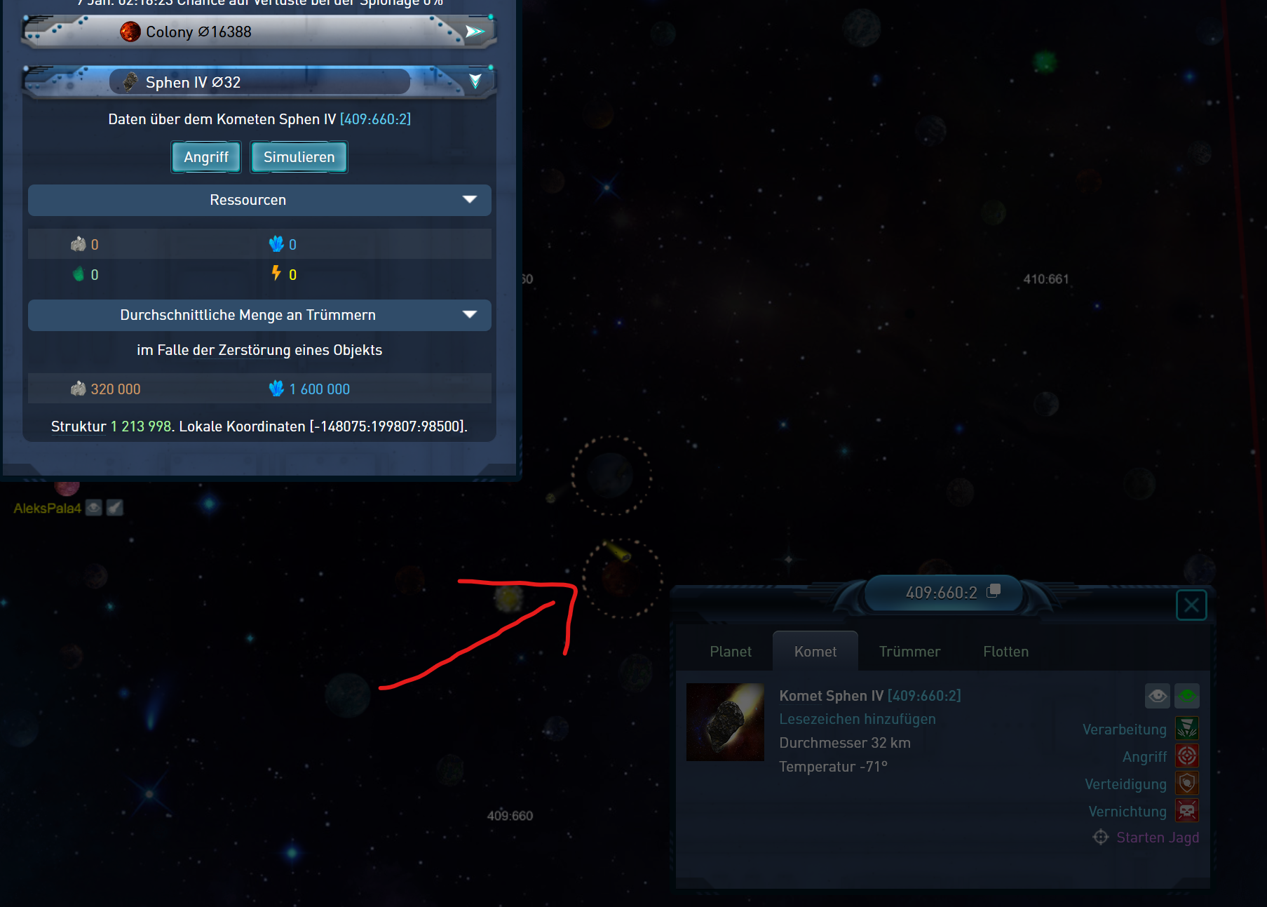 Obwohl das Komet laut Scann NULL Vespan drauf hat wir sie trotzdem in Gelb angezeigt als wenn Vespan vorhanden wäre