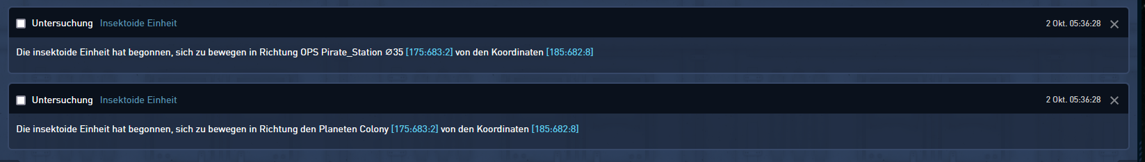 In meinem Fall haben sich zwei Objekte mit einer insektoiden Einheit auf mich zubewegt – das war mein Freund Diamantfaust, der mich unterstützt hat.