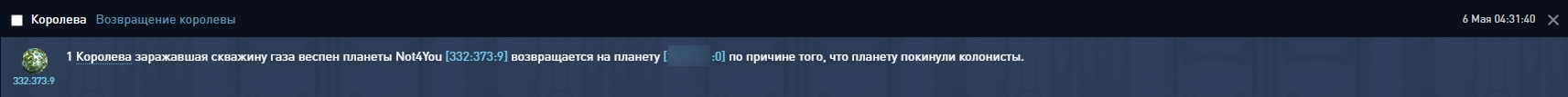 При покидании колонистами планеты иногда происходит авто-возврат королев на пункт возрата, который не указан в опциях заражения.