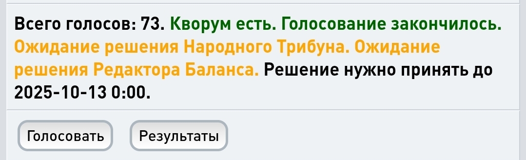 Уважаемая администрация, Народный Трибун и Редактор Баланса,