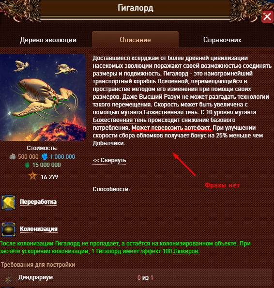 В описании юнит "гигалорд" отсутствует фраза о том , что он может перевозить гидралисков. Хоть юнит и обладает данной способностью.
