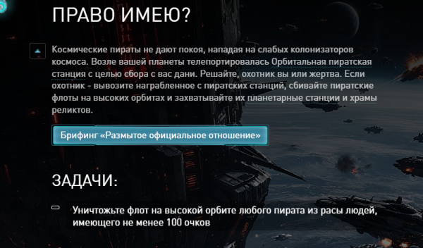 Довольно продолжительное время висит миссия 6 за людей, неоднократно убивал пирата 100+ очков, дальше миссия не продвигается.