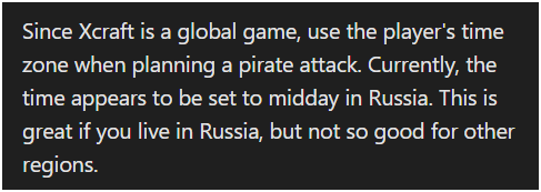 Поскольку Xcraft — это глобальная игра, при планировании пиратского нападения используйте часовой пояс игрока.