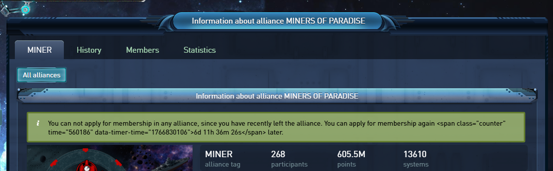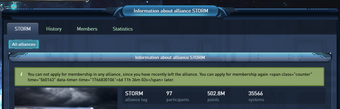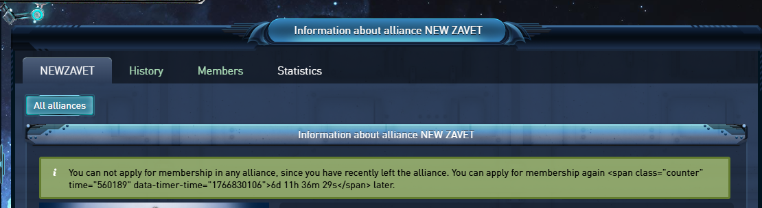 Backstory, I've exited the alliance and wanted to join other, but at the Alliance description form I did saw this green notification blob that contains the message with some HTML tags with classes and their values, that in this case should be hidden/not shown to the player