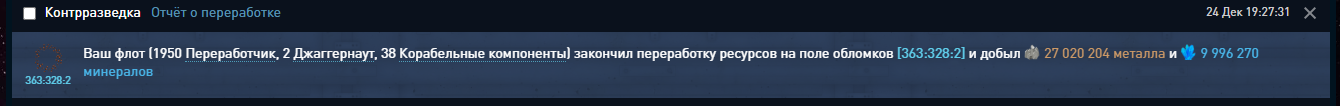 Переработал на орбите ресурсов более чем на 27кк за раз, но медаль "Мастер переработки II" не получил.