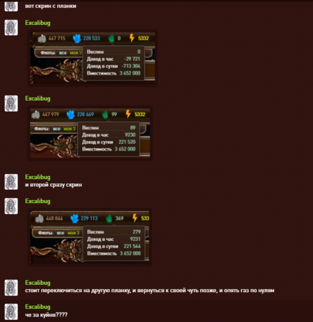 смотрю на планку, выработка в минусе - с чего бы это вдруг? Перехожу в сырье - газ начинает капать. Стоит переключиться на другую планку и на какое то время забыть, как потом возвращаешься к своей планке, а там так же - газ по нулям и выработка в минусе. Такое тоже на тере, тосе.