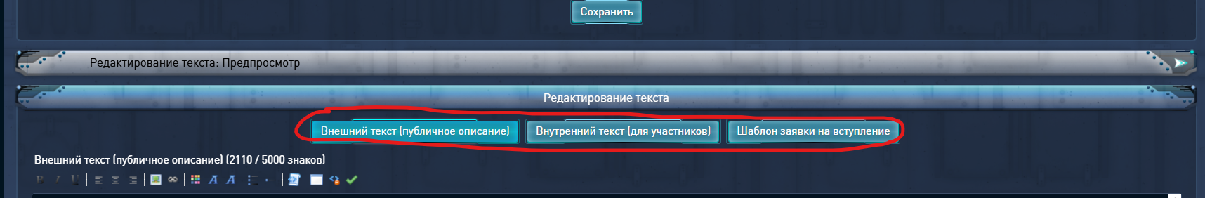 Не работают кнопки редактирования текста в описании альянса, Не работают кнопки редактирования текста в описании альянса