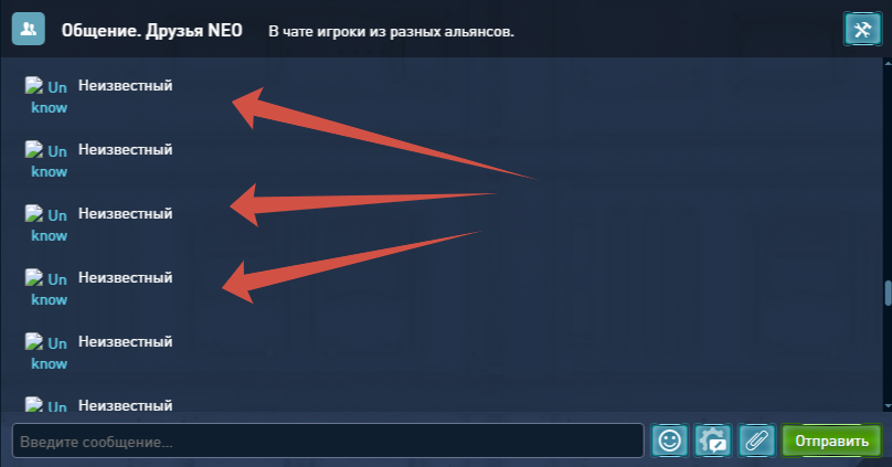 Когда открываешь любой чат и прокручиваешь сообщения вверх, дабы почитать прошлую переписку, буквально через 2-3 прокручивания всё пропадает, вместо имен игроков - "Unкnow", вместо сообщений - "Неизвестный". Перезагружаешь страницу, все появляется. Снова 2-3 прокручивания вверх и опять все пропадает.