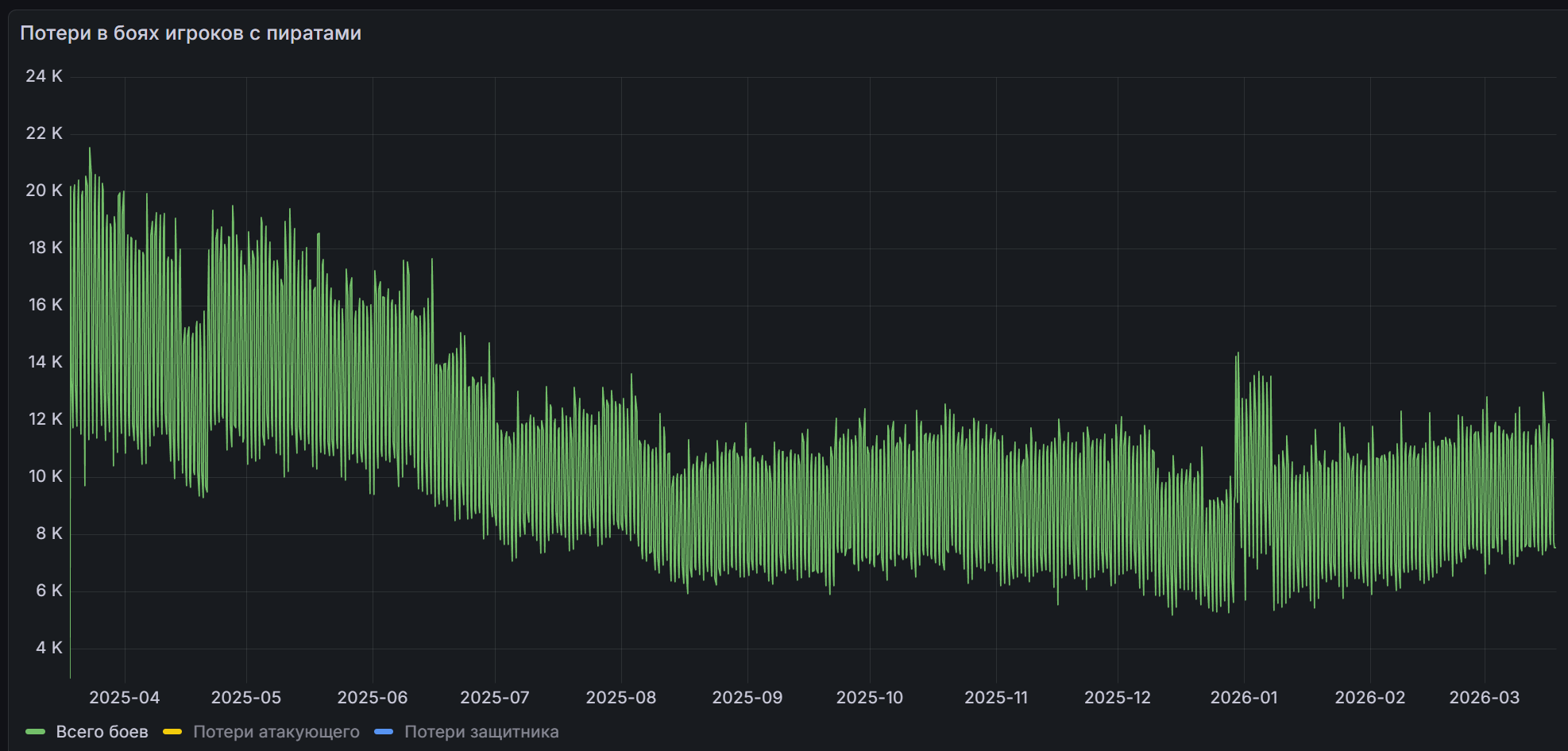 У боёв игроков с пиртами отдельный график.И он нам говорит о снижении пиродрочерства, но росте боёв игрок - игрок.