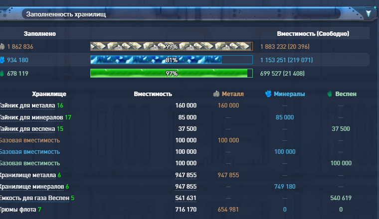 Описание: не хочу даже пытаться складывать на калькуляторе выработку ресов на остальных планетах. Но на этой по металлу в честь праздника х0 . да и по итогам- удачно сделал вчера скрин в 23,38 общей выработки. и для сравнения- сегодняшний "х7 "...)) и пушки не тронутые с 15к стали жрать 39к веспена...