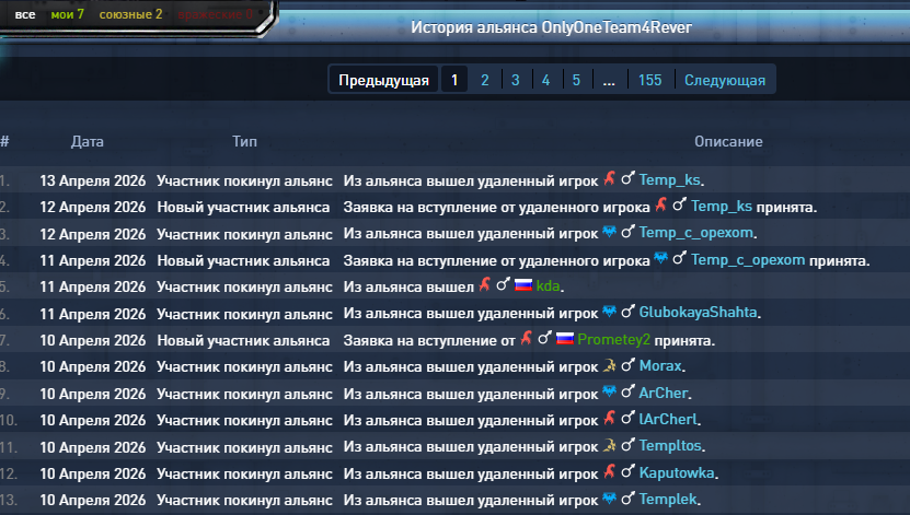 Если есть информщия по удаленным или забаненым игрокам альянса ОТР. В студию ... им уже это не навредит , но подтвердит Вашу информацию . Посмотрел выданные баны за пару суток нет ни одного игрока ОТР.