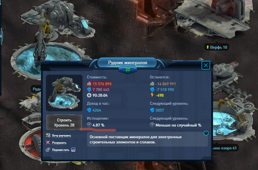 Описание: При строительстве "Рудник минералов" 27 ур. Истощение: