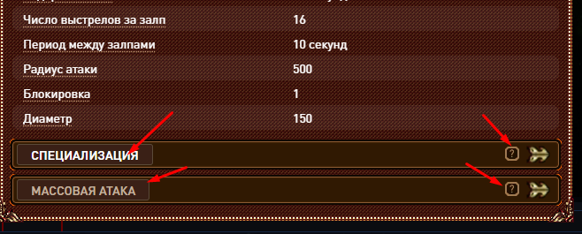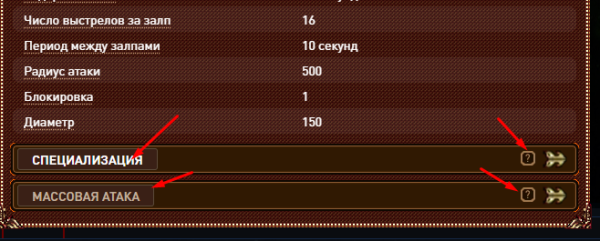 во время боя выбираем юнит, щелкаем на имя в левом верхнем углу, пытаемся открыть специализацию или массовую атаку. То же самое и вопросиком там же.