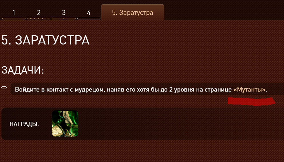 Доброго времени суток! В описании 5-й миссии ксерджей сказано о странице мутантов, но пройдя по ссылке попадаешь на премиум вкладку, где разделы что либо содержавшие подписаны, кроме раздела мутантов. Как новичку пришлось потратить достаточно времени в поисках страницы мутантов ну и самого мудреца конечно же.