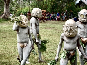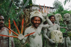 "Глиняные люди" племени асаро, также известные как холоса, - это те, кто носит традиционный костюм, состоящий из масок, сделанных из грязи. Они проживают недалеко от деревни Горока в провинции Восточное нагорье.